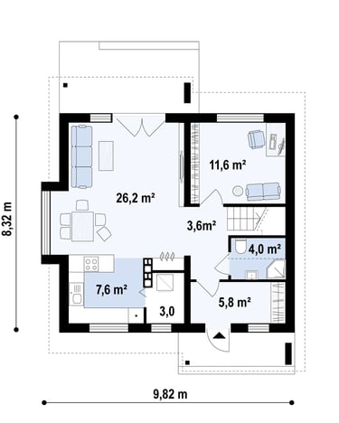 Svetainė+valgomasis 26,2 m²