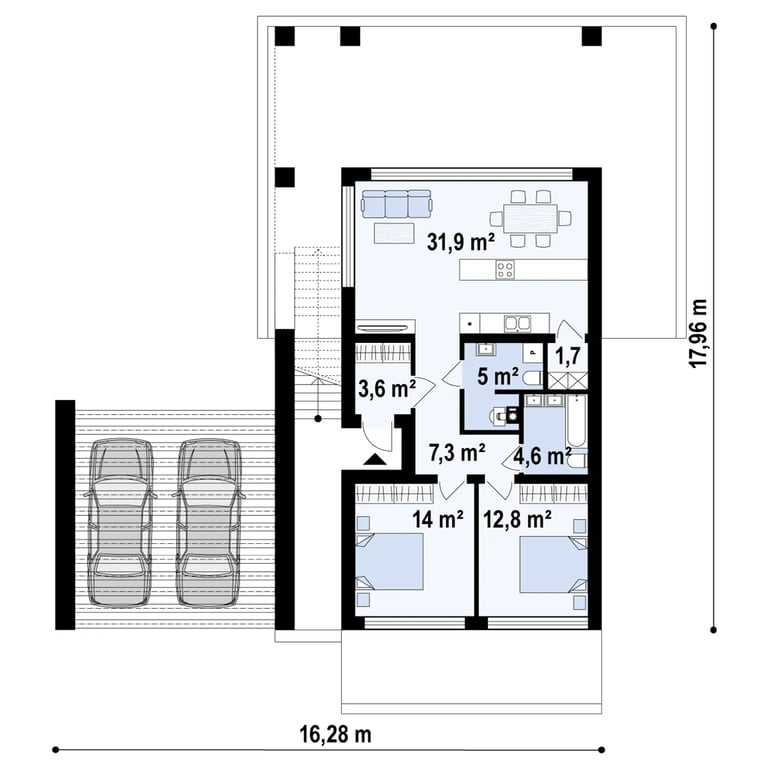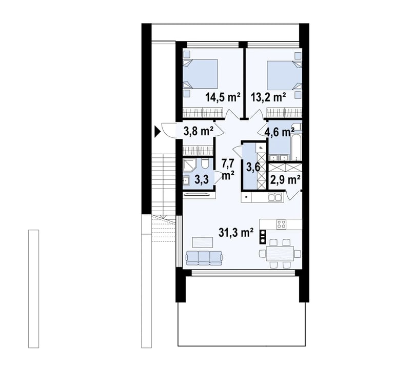Svetainė+virtuvė 31,9 m²