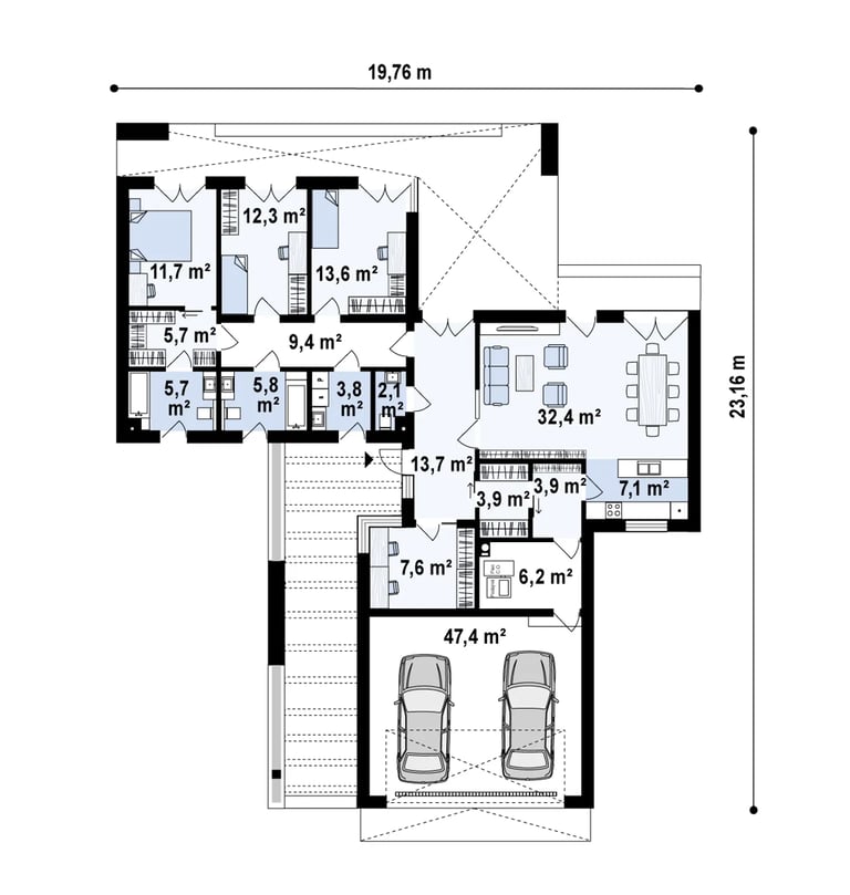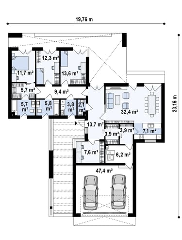Garažo zona 47,4 m²