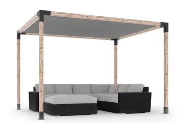 Nuo kaitrios saulės: pergola stogo audinys pasižymi specialiomis savybėmis, kurios visiškai nepraleidžia kenksmingų UV spindulių ir sulaiko karštį – tai garantuoja puikų poilsį terasoje.