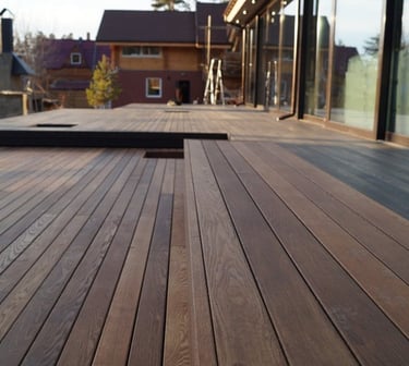 Termo pušis - Terasinės lentos iš termo medienos, tai teisingas pasirinkimas, žmonėms norintiems turėti aukščiausios kokybės, ilgaamžę ir gražią terasą, iš natūralios ir ekologiškos medienos. Gali būti naudojama be jokio paviršiaus apdorojimo, nes turi 1 atsparumą puvimui kategoriją. KOMO kokybės, BRE, PEFC, lnspecta, Nordick Eco label ir kt. sertifikatus