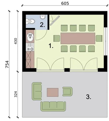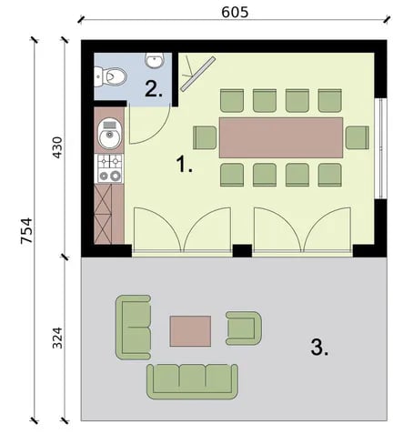 1. Valgomasis + Virtuvė 19,75 m²
